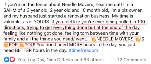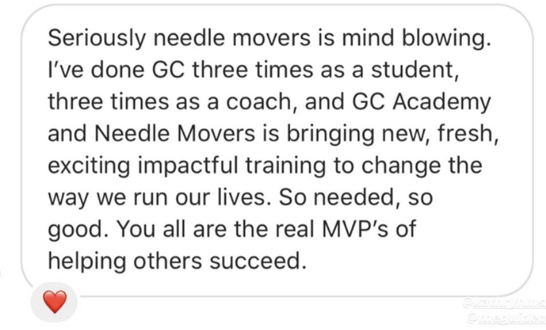 The GOOD NEWS is that Needle Movers is designed to actually SAVE you time by giving you the system to focus on the *right* things and remove the things that no longer serve you so that you are truly moving the needle in your business.