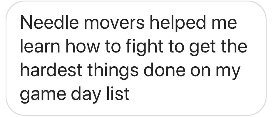 Needle Movers is for the person that catches themselves saying “I don’t have time” or “I don’t know what to focus on.” If it feels like your to-do list is never ending, you're not accomplishing the ‘hard’ things or you’re not making daily progress, this system is for you.